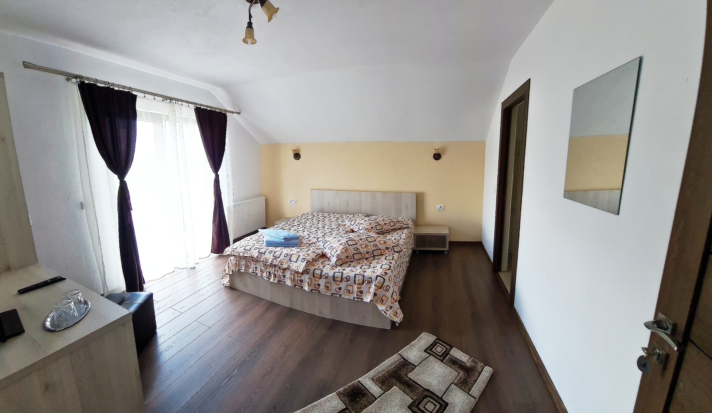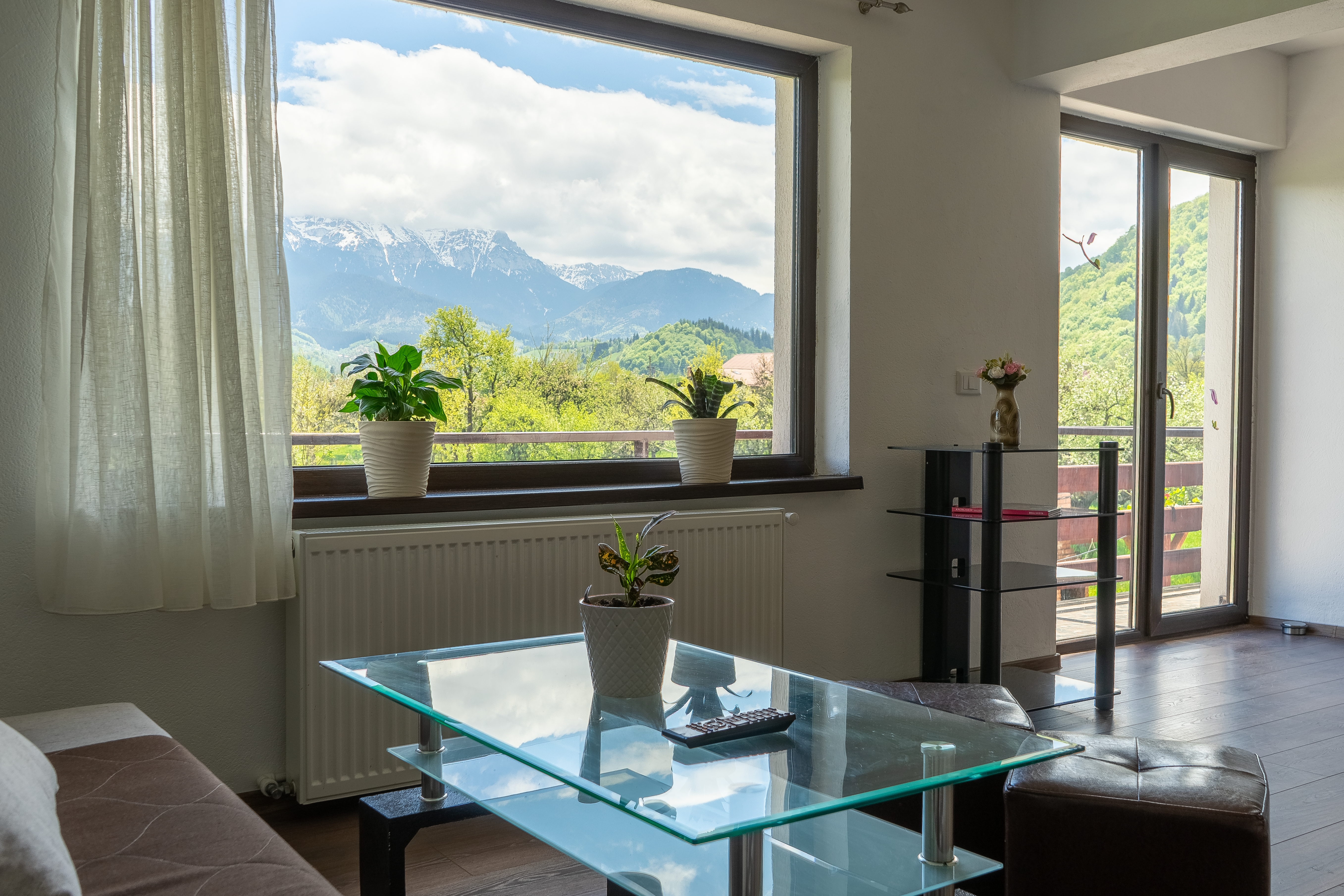 Balconul pensiunii îți oferă o priveliște de neuitat asupra Munților Bucegi, fiind locul ideal pentru momente de relaxare în mijlocul naturii. Aici poți savura cafeaua de dimineață în aer curat, bucurându-te de liniște și de peisajele spectaculoase. Seara, apusul creează o atmosferă deosebită, perfectă pentru a încheia ziua într-un cadru relaxant și reconfortant.